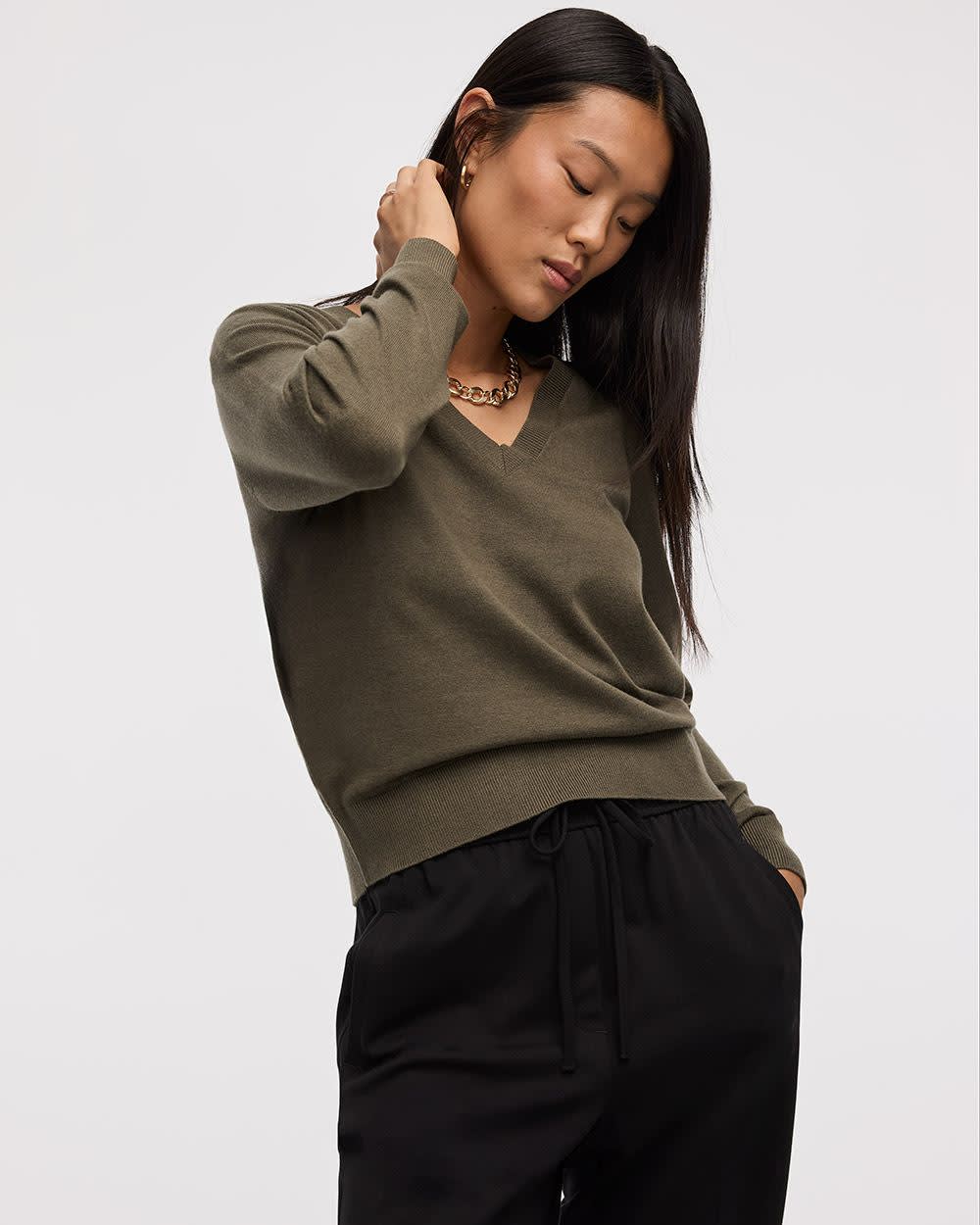 Pull à manches longues et col en V